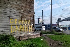 Жители хабаровских бараков на «Проспекте сопротивления» снова потребовали решить проблему аварийного жилья В прошлый раз баннеры с неудобными надписями быстро сняли, в этот раз авторы пишут прямо на домах